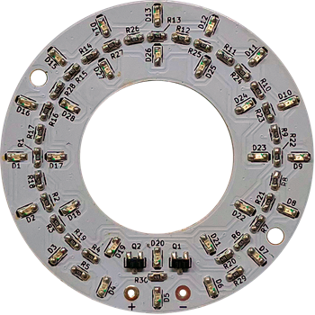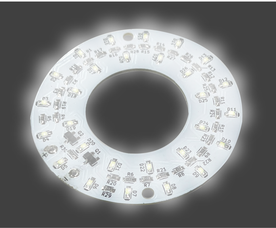2重の円状にLED28個を配置したドーナツ形の基板です。