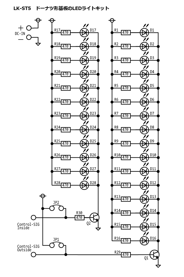 基板の一部を改造し、別売のLK-ST4やLK-ST7、LK-ST9と接続して、外側のLEDと内側のLEDを別々にON/OFFするこができます。