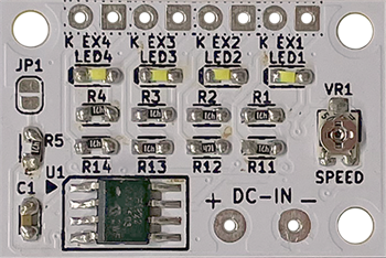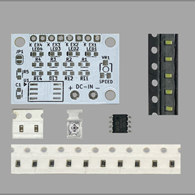 4つのLEDの動作を流れるウィンカー動作と残光付き順送り点灯動作の2つのモードから選んで組み立てます。